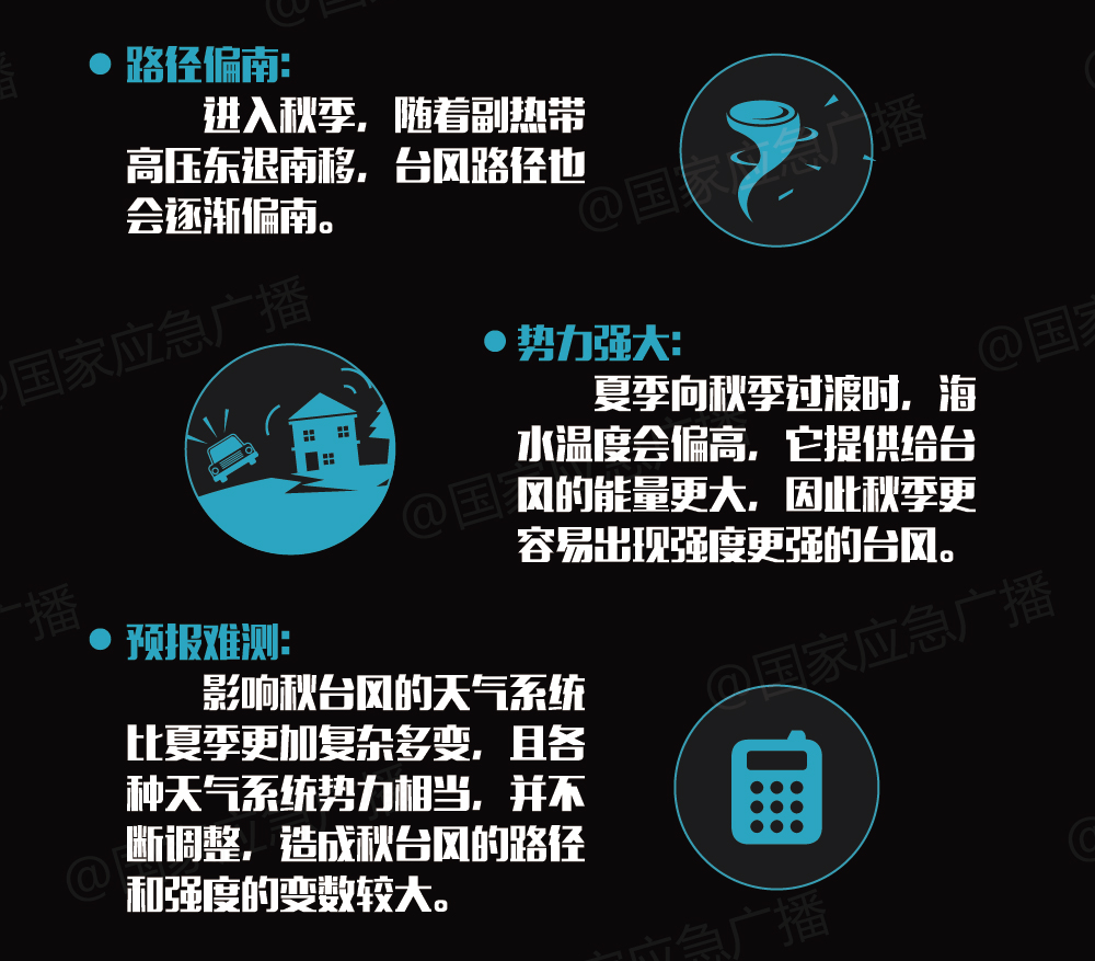 据了解,从春分开始,太阳直射点从赤道向北回归线移动,加热了北半球热带海洋,海水热量不断累积,通常8月至9月,海温达到最高,海温高有利于台风生成和能量增强。同时,8月底至9月初,冷空气开始活跃,也有利于台风强度增加。