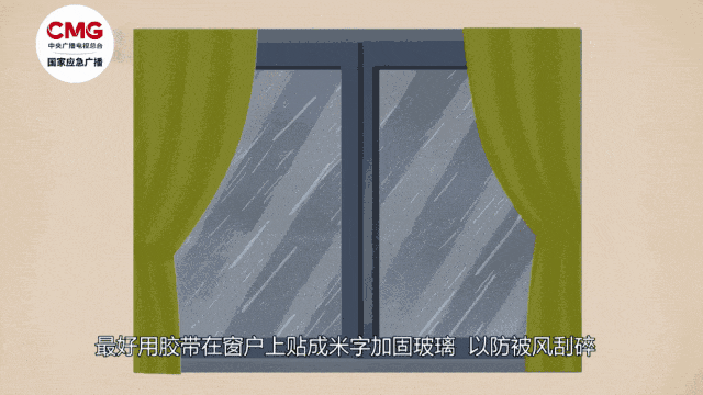 2.检查并及时加固门窗、室外空调、太阳能热水器等室外搭建物。可在窗玻璃上用胶布贴“米”字形,以防窗玻璃破碎。