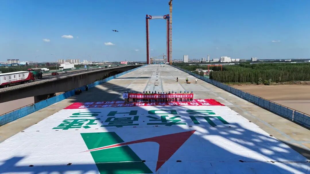 京台高速公路齐河至济南段改扩建工程黄河特大桥主桥钢箱梁顺利合龙