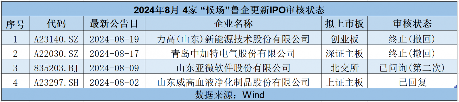 8月,山东在审IPO企业中有4家更新审核状态。其中,亚微软件(835203.BJ)审核状态为已问询(第二次),威高血液(A23297.SH)审核状态为已回复。