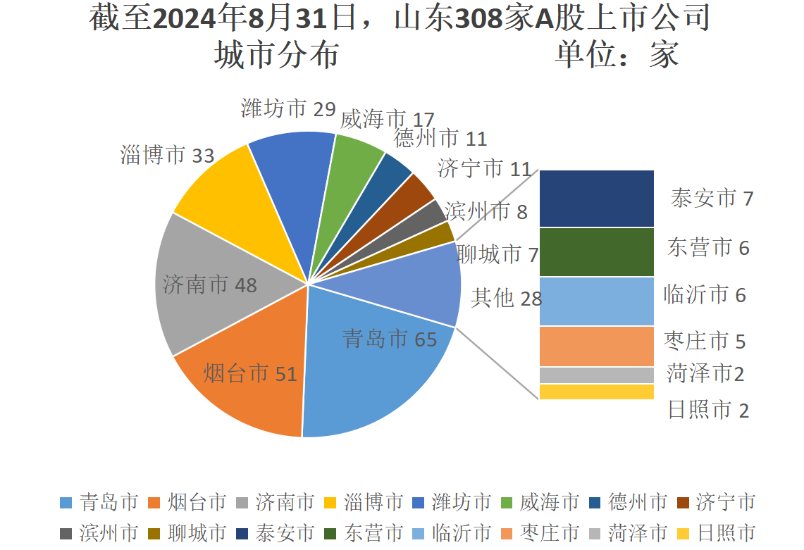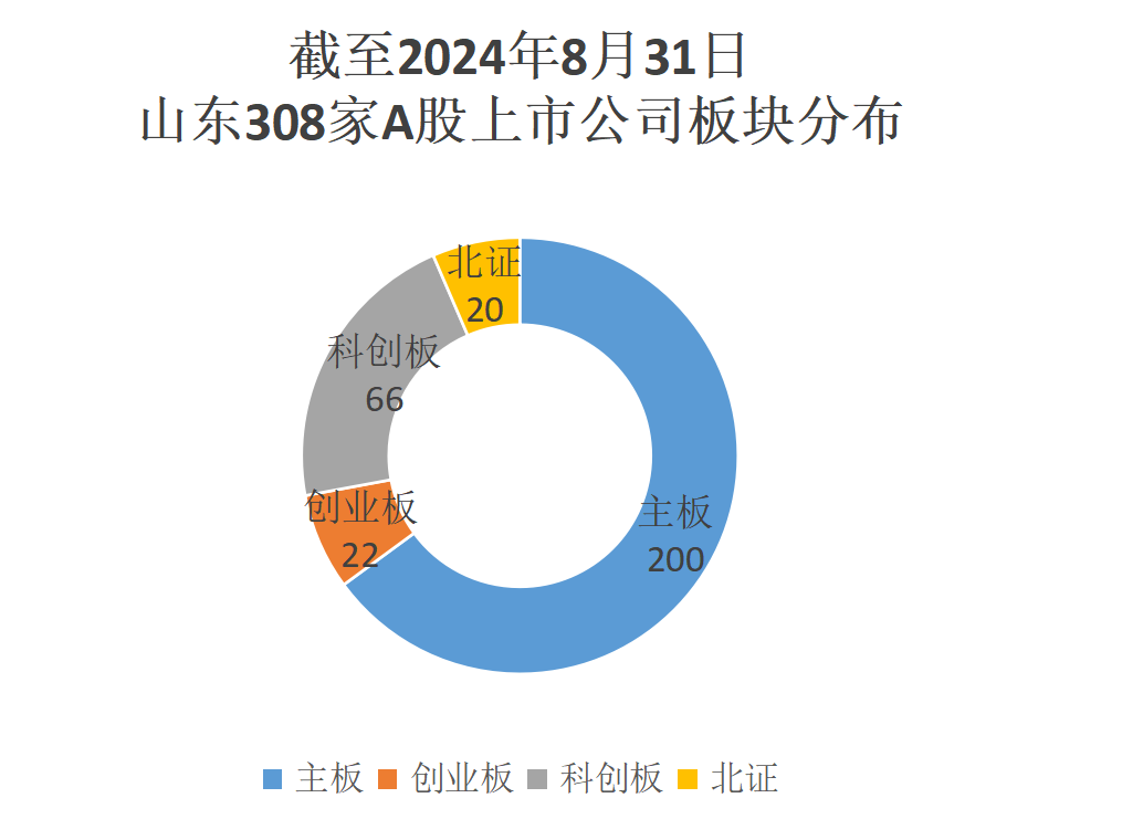 截至8月末,山东A股上市公司有308家,其中沪深主板200家、科创板66家、创业板22家、北证20家。