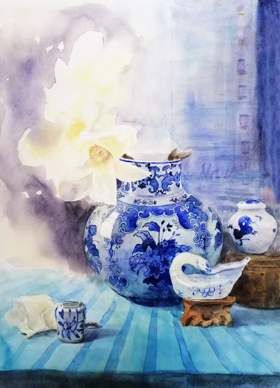 水粉《白釉青花》 棘洪滩街道康园路小学 沈双双