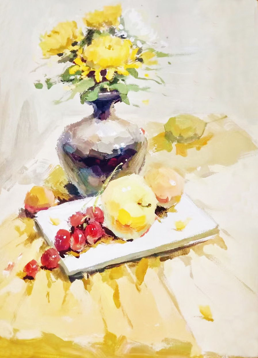 油画 《柿柿如意》城阳区书雨学校 刘春如