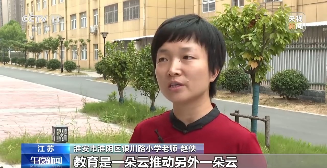 江苏淮安市淮阴区银川路小学老师 赵侠:我想对我的老师说,老师,我们一直说教育是一朵云推动另外一朵云,你就是推动我的那朵云。而未来我的使命,也是用我微不足道的这朵云去推动更多的云动起来。