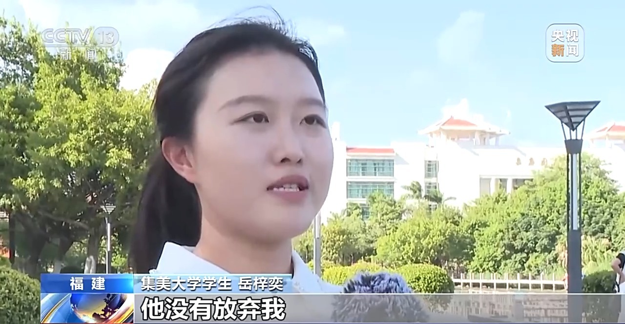 集美大学学生 岳梓奕:我的数学一直特别差,但是我的数学老师,他没有放弃我,给我们一起补习,告诉我们说,你要相信自己。我想说谢谢您老师,三生有幸得您伴我一程风雪。