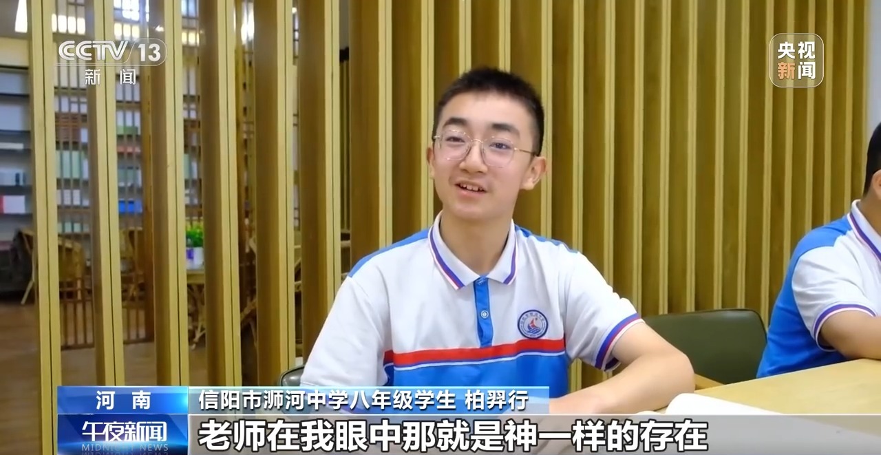 信阳市浉河中学八年级学生 柏羿行:教师节到了,我想对我又敬又怕的老师说,节日快乐。
