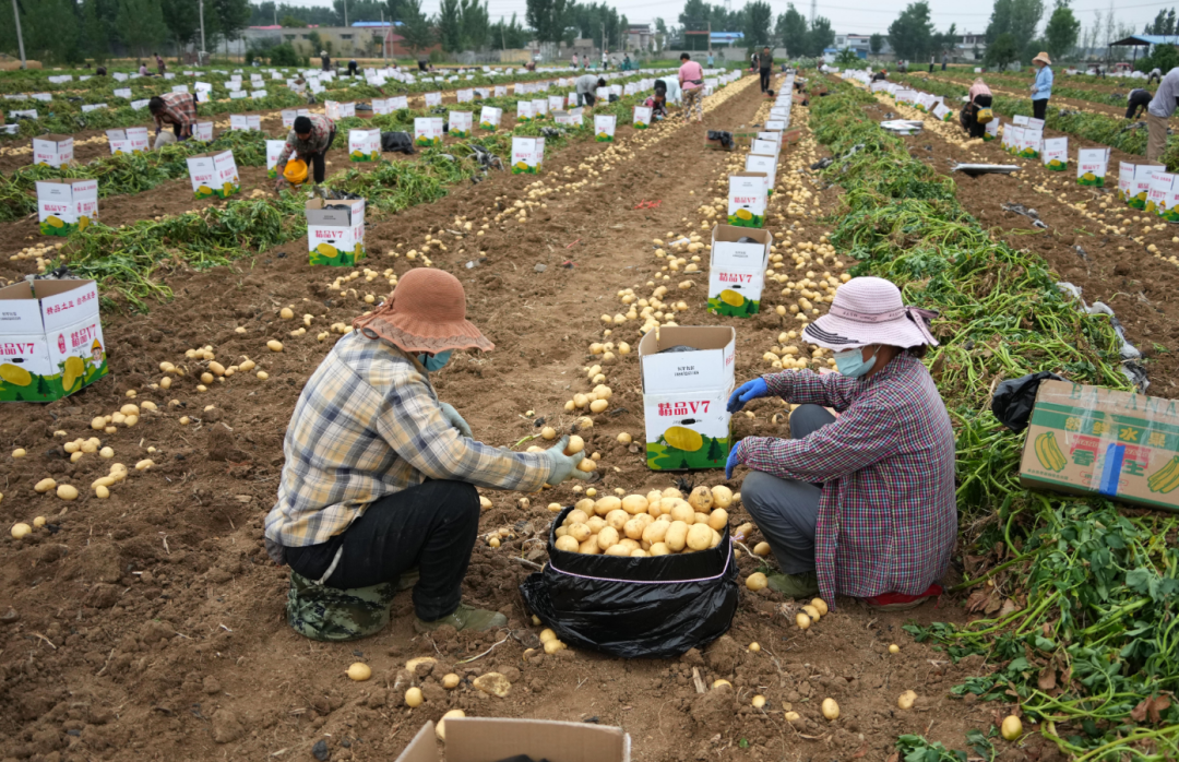 山东省滕州市界河镇村民将马铃薯分类装箱。徐速绘摄(新华社)