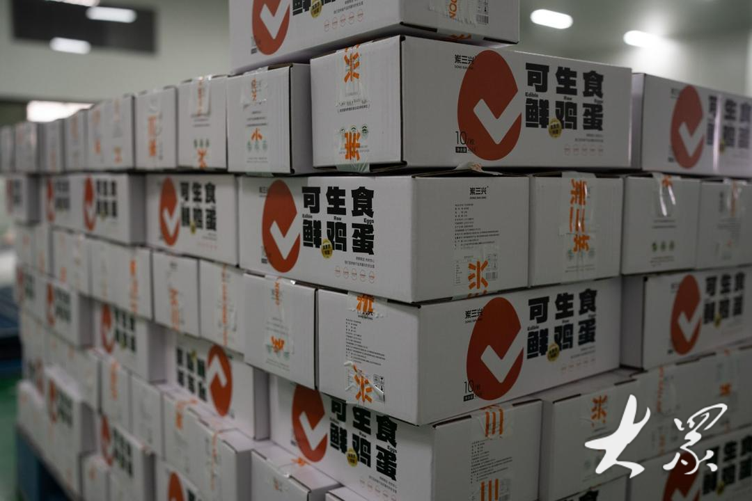 不过生产可生食的一枚“好蛋”可不容易。在产蛋之初,三兴禽业就要把有沙门氏菌的蛋鸡清理出去,对生产出的鲜鸡蛋进行严格消毒。在智能化加工车间记者看到,鸡蛋要经过清洗烘干、紫外线杀菌、蛋体识别、食用白油覆膜、裂纹检测和称重分拣等环节,将不合格的鸡蛋筛选出去后,才能装箱出厂。