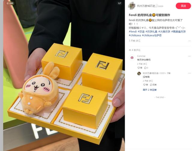 值得一提的是,有自称网名为杭州万象城销售的网友,发出了今年的fendi品牌月饼图,并回复网友不对外售卖,与之前直播间的包装并不相同。