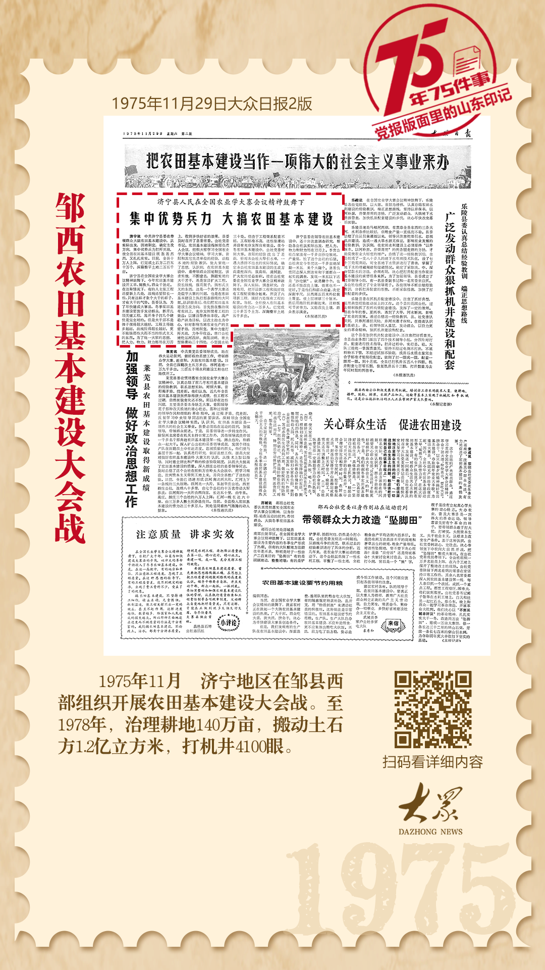 75年75件事·党报版面里的山东印记|1975年:邹西农田基本建设大会战