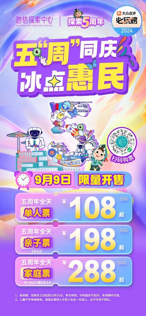 💰活动票价:单人票108元起、亲子票198元起、家庭票288元起