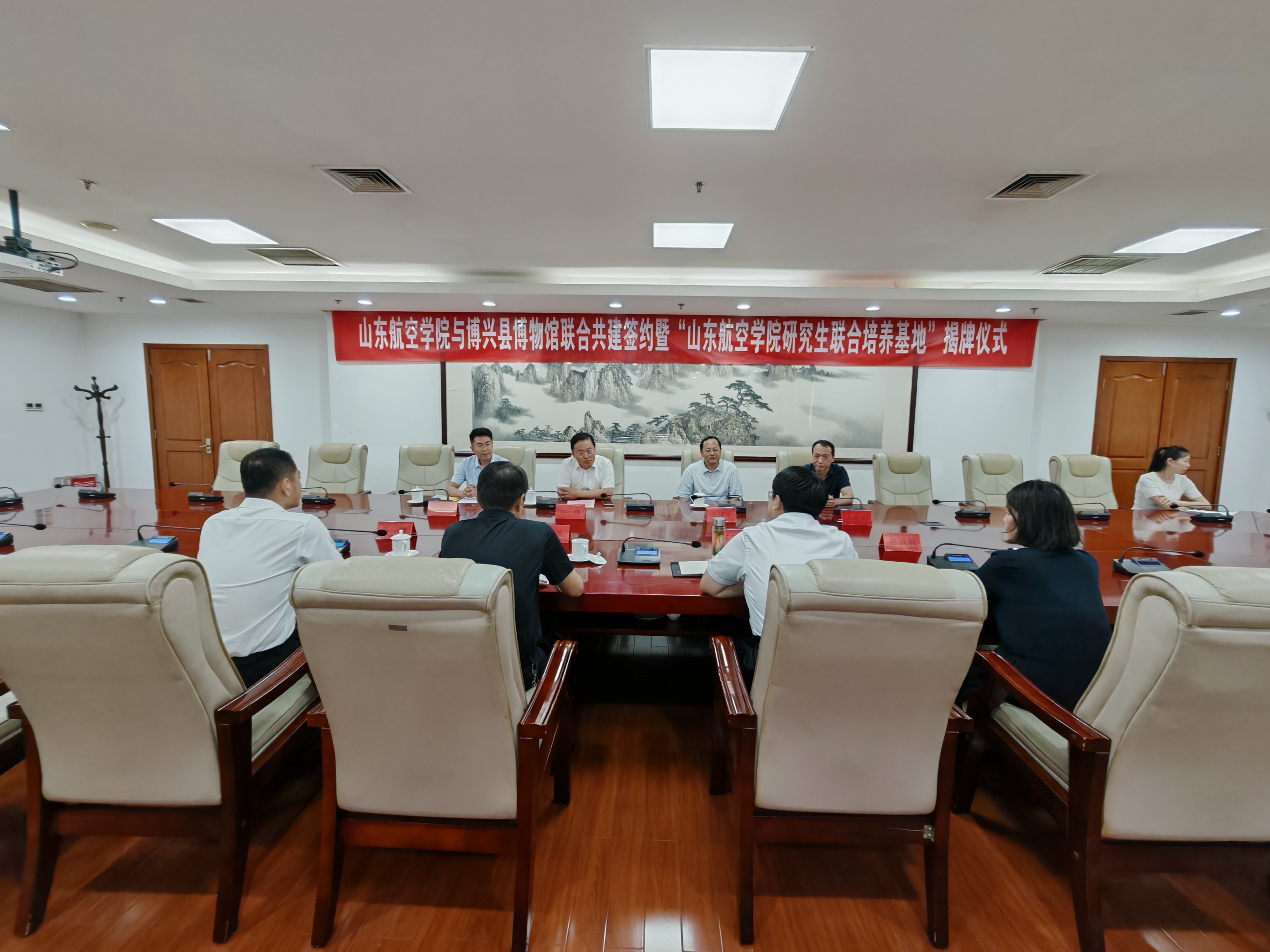 9月10日,山东航空学院与博兴县博物馆联合共建签约暨“山东航空学院研究生联合培养基地”揭牌仪式在博兴县行政中心举行。山东航空学院党委委员、副校长杜伟,山东航空学院人文学院书记王保中,山东航空学院人文学院院长、教授王凤翔,山东航空学院人文学院中国史教研室主任、教授王爱民,博兴县委常委、副县长,乔庄镇党委书记范国龙等领导出席仪式,博兴县文化和旅游局党组书记郝高东主持活动仪式。