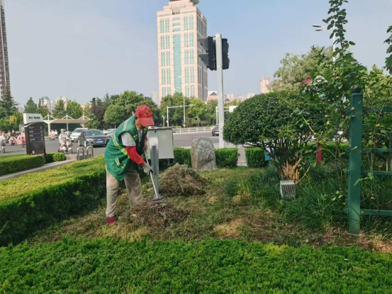 清除杂草,保障景观效果。采用“机械打草+人工清理”相结合的方式,对辖区道路两侧绿化带、行道树树穴和公游园等绿地内深根式、浅根式杂草开展拉网式清除工作,有效遏制杂草的生长势头,减轻对绿化植物的竞争压力,提升城市绿地美观度。