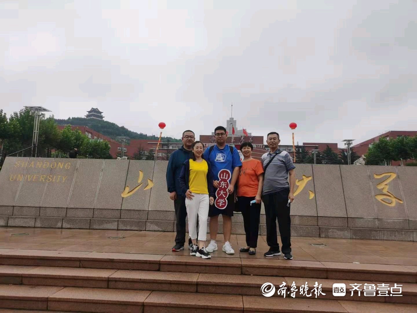 大姐的孙子考上了山东大学(计算机学院)一家人在校门口留影