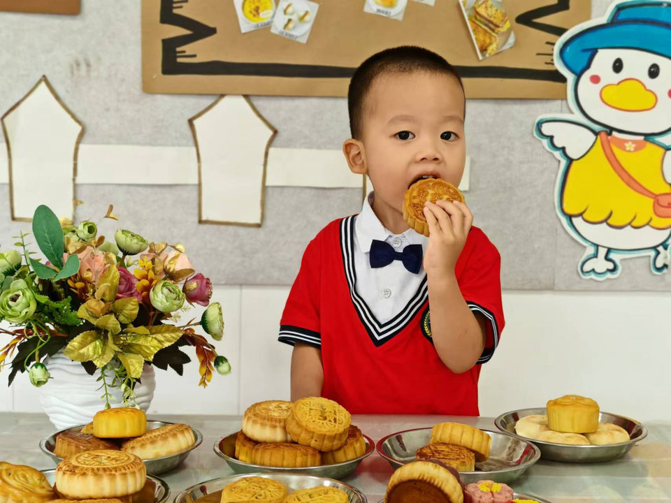 活动中,小班组的孩子们在老师的带领下,举办了一场别开生面的月饼品鉴会,各式各样的月饼琳琅满目,通过品鉴活动,孩子们不仅享受到了美食,更在分享与品尝中学会了感恩与团圆的意义。中班的小朋友们则化身成为“小小糕点师”,亲自动手制作月饼,随着烤箱中飘出的阵阵香气,一个个形状各异、充满童趣的月饼新鲜出炉。孩子们看着自己亲手制作的月饼,成就感满满,更深刻地体会到了中秋节制作月饼这一传统习俗的乐趣与意义。大班的孩子们则开展了一场关于中秋的深入探究活动。他们通过观看视频、阅读绘本、动手实验等多种方式,了解了中秋节的起源、传说以及月亮的圆缺变化,孩子们不仅增长了知识,还激发了探索宇宙奥秘的兴趣,更加深了对中国传统文化的热爱与传承。