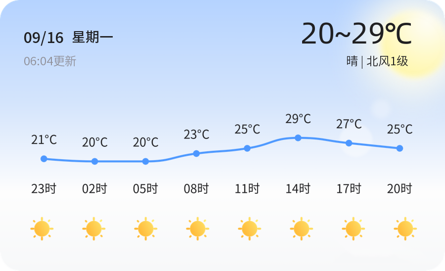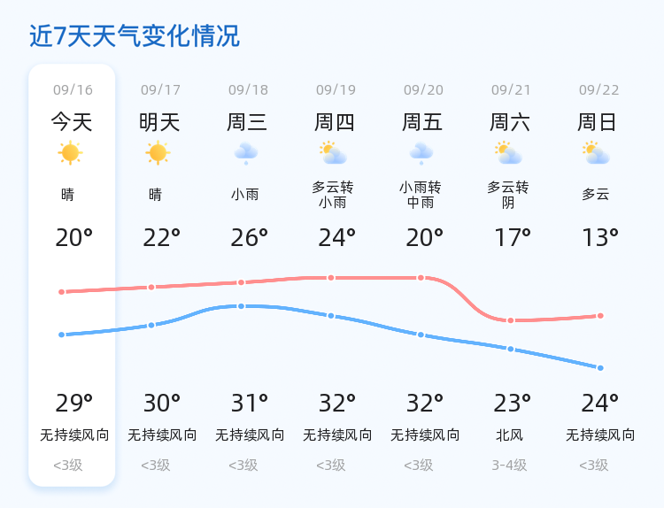 今天是2024年9月16日,农历八月十四,济宁天气晴朗,微风拂面,市民们可以尽情享受这宜人的好天气。各区普遍以晴朗为主,气温在20℃至29℃之间,适宜外出活动。空气湿度达到88%,空气质量良好,PM2.5指数为51,呼吸间满是清新与舒适。