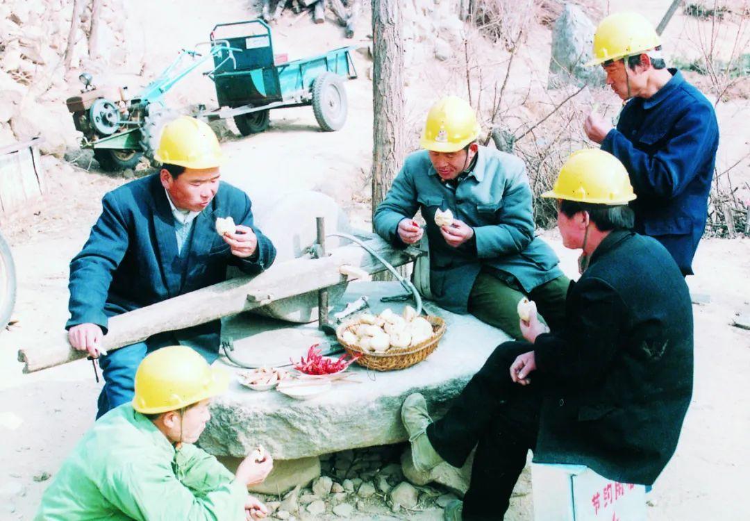 曾经参与西红峪架电工程的季文晓回忆,这尊石碾是当年电力施工人员的餐桌,吃饭时随手搬几块石头就是凳子,煎饼、咸菜和辣椒是标配,偶尔吃个大包子就当改善伙食了。寒冬腊月,山上本来就缺水,一条小水沟也上了冻。施工人员通常是摘掉手套就吃饭,白生生的包子上留下一个个黑指印。热腾腾的包子就着山风吃,两口下去就凉了。