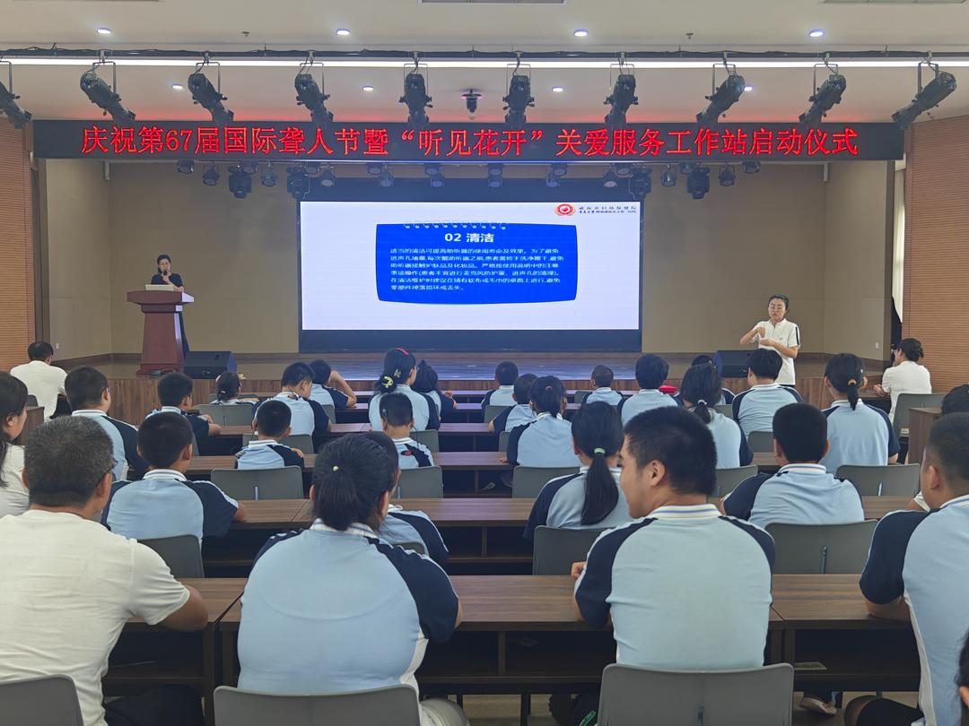 9月18日,第67届聋人节到来之际,山东省聋人协会、威海市妇幼保健院与威海市特殊教育学校携手合作,在威海市特殊教育学校正式启动了我省首个“听见花开”关爱服务工作站。启动仪式上,威海市妇幼保健院、青岛大学附属市立第二医院院长、山东省健康管理协会耳鼻咽喉科副主任委员张恩东,威海市残联副理事长王建科,威海市特殊教育学校校长林玉明,山东省聋人协会主席孔军强共同见证了“听见花开”关爱服务工作站启动,标志着我省首个关爱听障学生的专业工作站正式启用。
