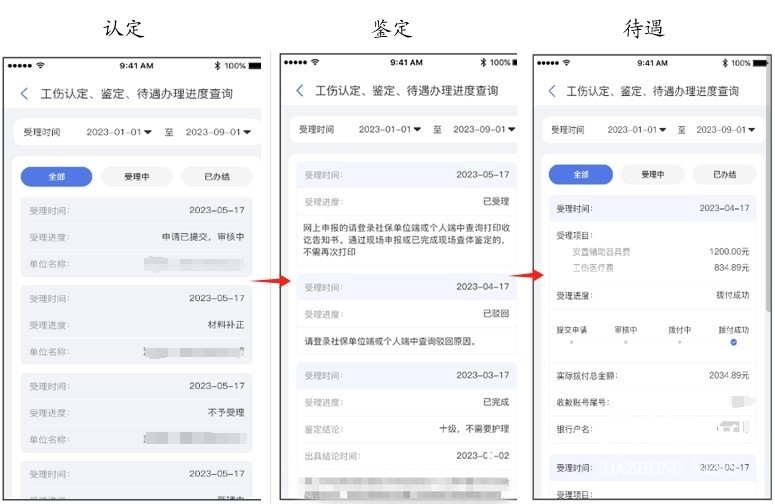 “工伤业务办理进度查询一件事”查询功能场景展示: