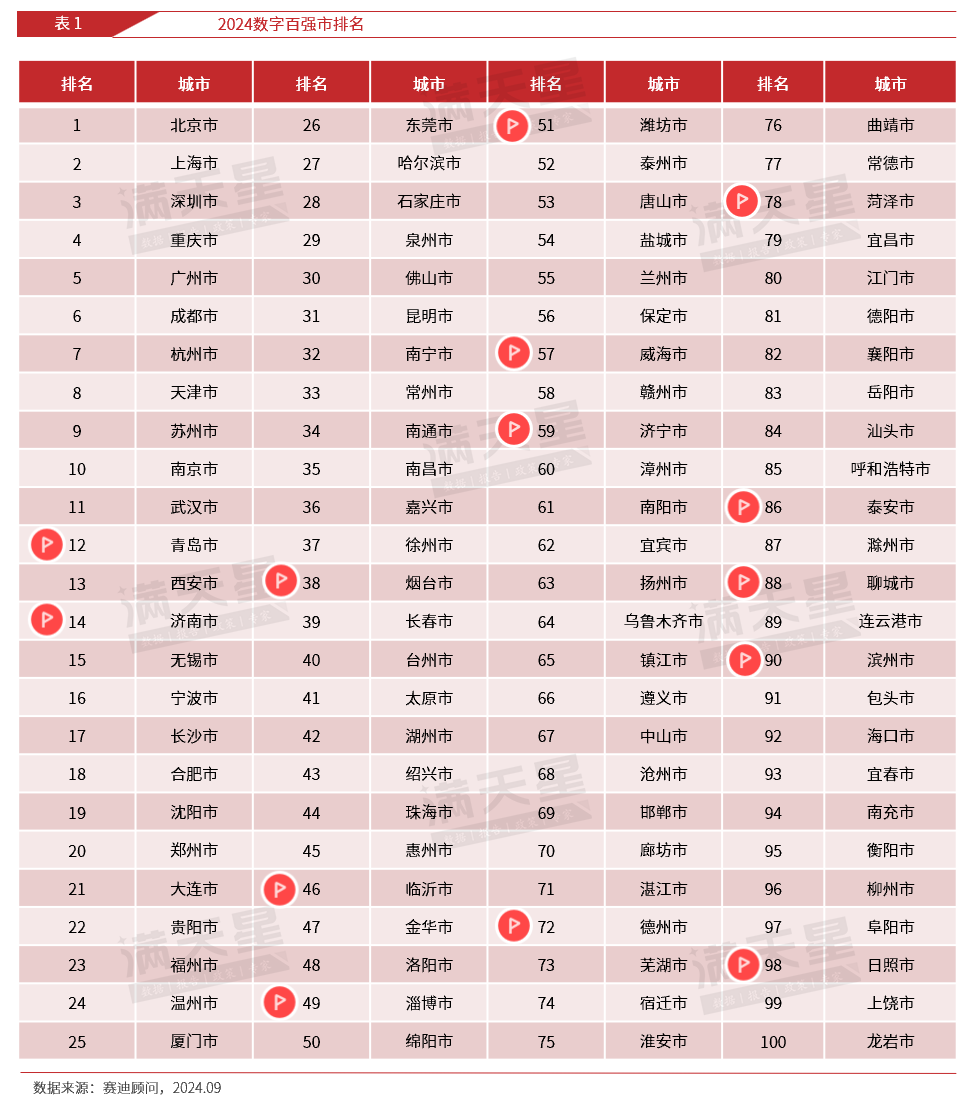 此外,赛迪顾问同时发布了2024信息基础百强市、2024数字文化百强市榜单。