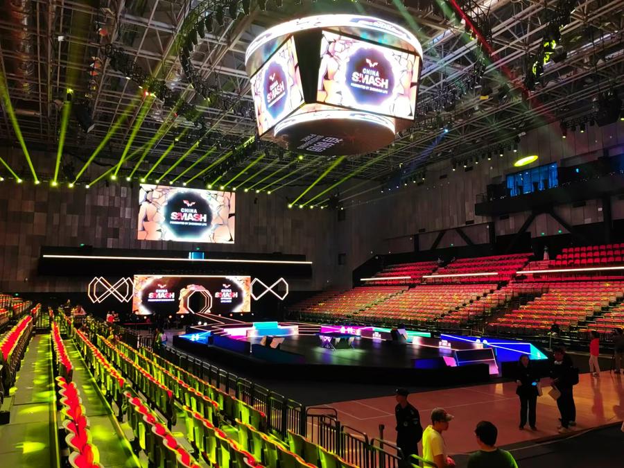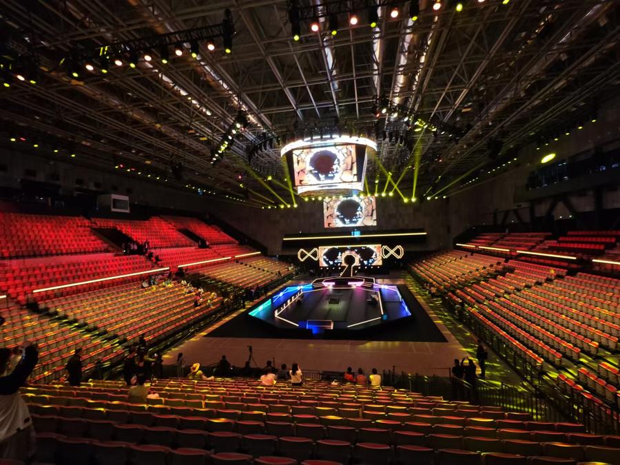 走进本届比赛的核心场馆八极场(Infinity Arena),绚丽的灯光、立体的音响声、赛博朋克风的环境设计,搭配场馆高挑的空间及崭新的设备设施,营造出沉浸式观赛体验。该场馆共有观众坐席超3000个,男女单打、混合双打半决赛和5个单项决赛都将在这里举行。