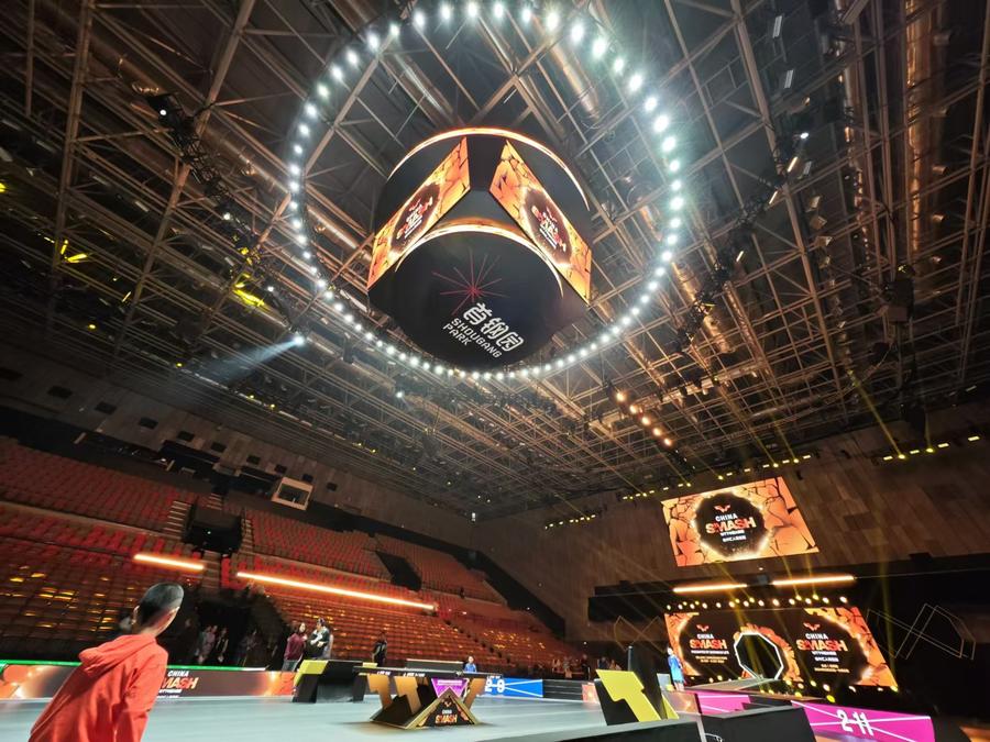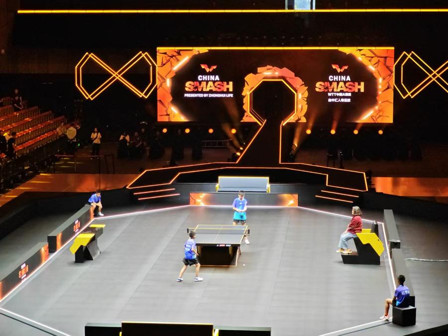 八极场西,是由短道速滑馆改建而成的二号馆(Smash Arena),共有1500个座位,除了全部资格赛,观众还有机会在这里欣赏到5个项目正赛选手的表现。二号馆搭建了3张比赛球台,观众席距离球台更近,不仅有机会同时观看3场比赛,还能近距离观察运动员的动作细节。二号馆旁边,花样滑冰馆经过改造作为本届赛事的训练馆使用,场馆内摆设了数十张专业球台。