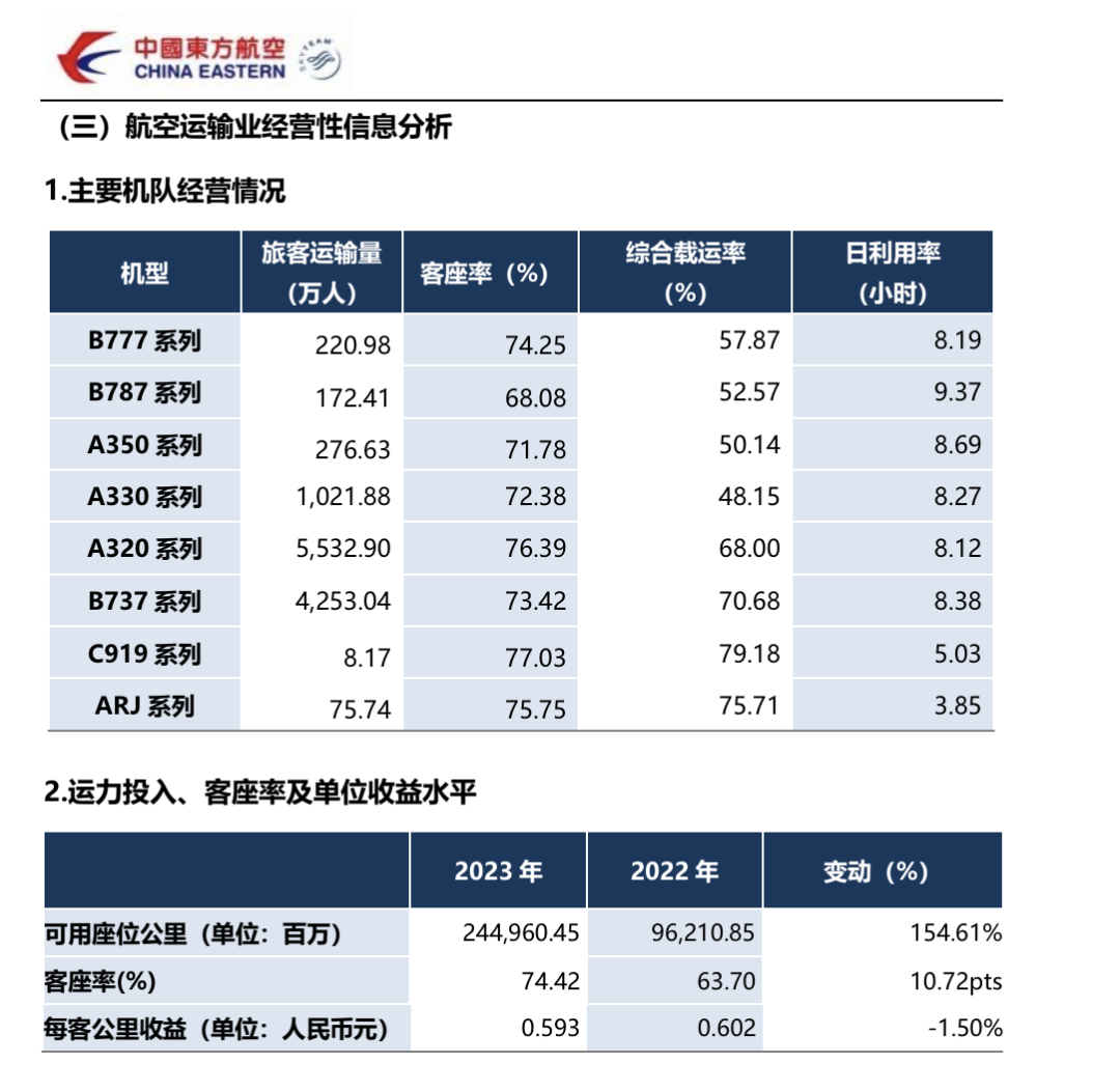 在东航之前,已有新航司成立时就采用全国产飞机,毕竟在民航局严控新设航空公司后,使用支线飞机,尤其是国产飞机设立支线航空公司更容易获得支持,天骄航空就是这一政策的受益者。成立于2017年1月的天骄航空,由内蒙古国资全资持有,是近年中国民航局审批的最后一家客运航司。在一二三航空注销后,天骄航空也成为国内唯一一家运营纯支线飞机的航司。记者查询天骄航空的运营数据发现,其日利用率也不高,8月份平均在4.1小时,而这也是国内航司运营ARJ21的普遍情况。ARJ21飞机是我国首次按照国际民航规章自行研制、具有自主知识产权的中短程新型涡扇支线飞机。目前,国内共有成都航空、天骄航空、江西航空、中国国航、一二三航空、南方航空、华夏航空7家客运航司在运营ARJ21飞机。根据航班管家的统计,8月份7家航司的ARJ21机队平均日利用率为4.5小时,最高的南方航空为4.9小时,最低的一二三航空为3.3小时。这与国内在运营的其他干线飞机动辄8小时以上的飞机利用率相差甚远。比如南航2023年年报显示,公司旗下的波音737和空客320飞机,利用率分别为9.2小时和8.9小时,而ARJ21飞机的利用率为3.5小时(南航年报里的ARJ21机队包括了孙公司江西航的ARJ21),公司旗下的河北航还有另一种支线客机EMB190,其190飞机的日利用率略高于ARJ21,为4.4小时。