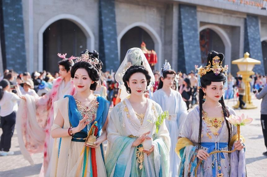 此外,身着华丽汉服的演艺人员还将从古韵小镇巡游到节庆广场,向游客展示中国传统服饰的精美典雅,呈现一场穿越时空的视觉盛宴,途中将与游客亲密互动合影,一同感受中国传统文化的魅力。