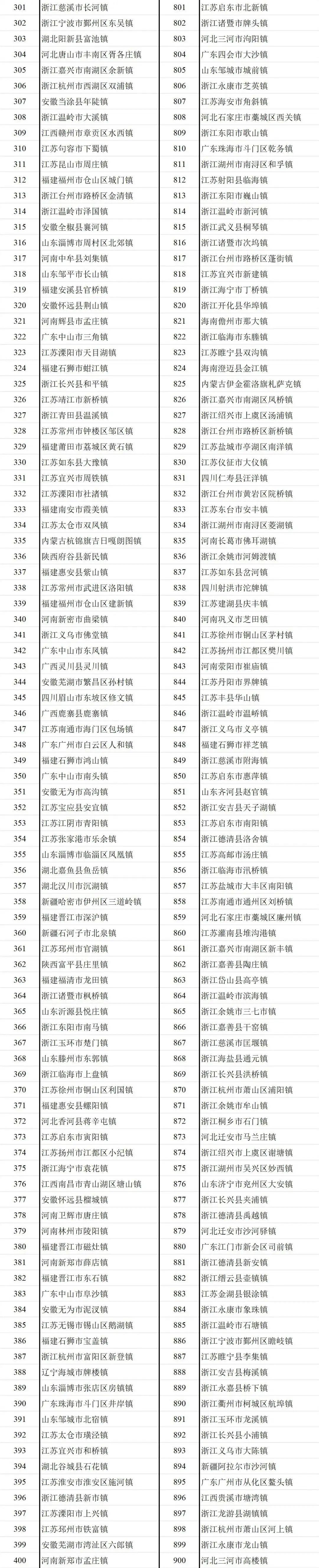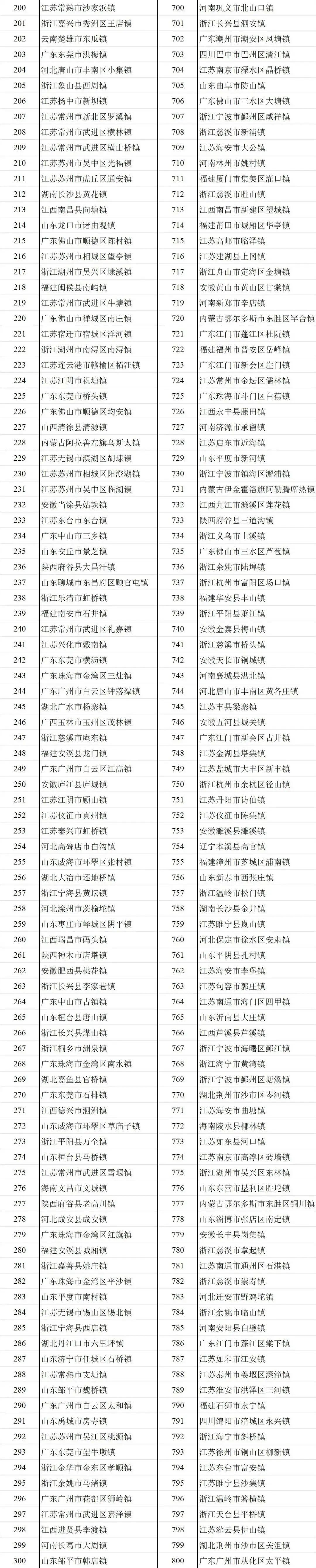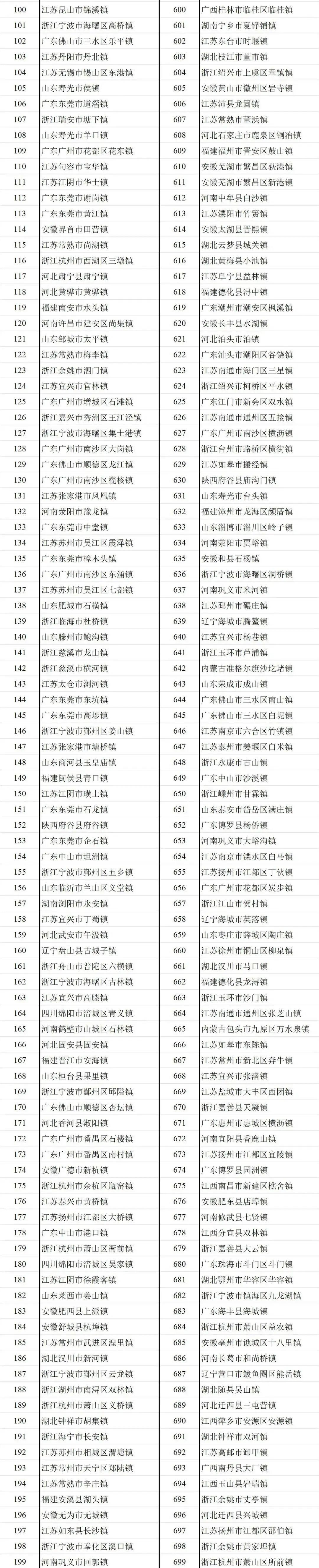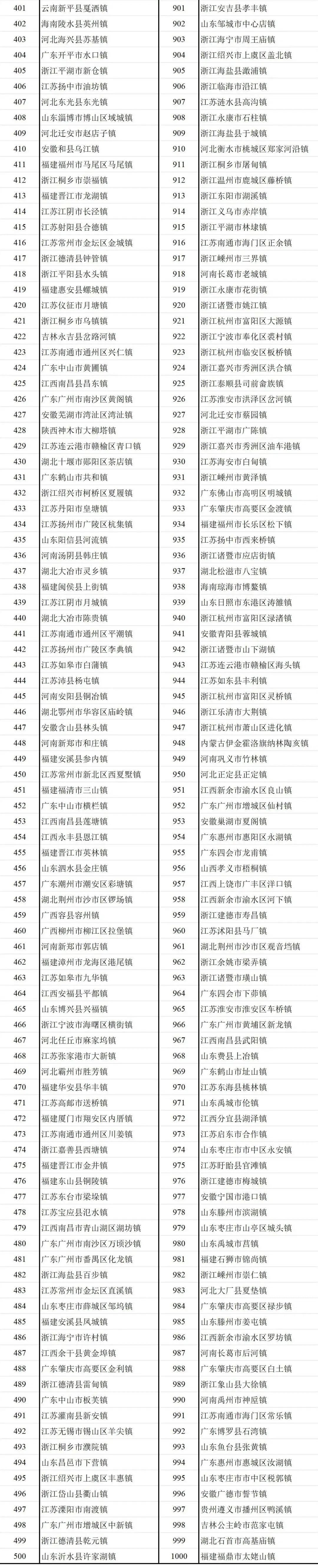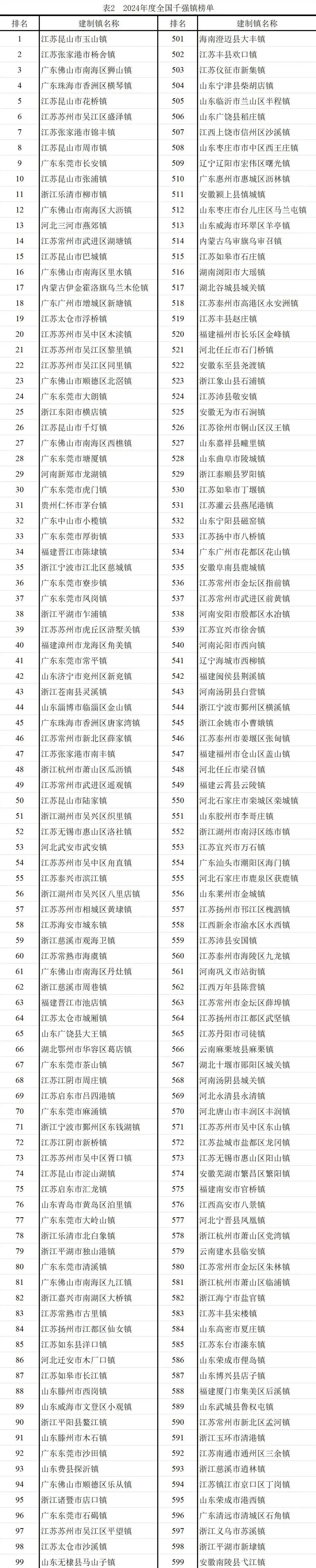 据测算,2023年千强镇综合实力指数为69.0,较上年提高1.2。分模块来看,生态宜居指数高达81.2,较上年提高1.0,展现出镇域良好的生态基底;生活富裕指数为76.9,较上年提高0.9,证实共同富裕正在扎实推进;经济发展和创新活力指数分别为63.7、63.6,虽然数值偏低,但增势亮眼,较上年分别提高1.5、1.3;发展潜力指数为66.5,较上年提高0.9,“进”的动力进一步加强。全国千强镇榜单如下: