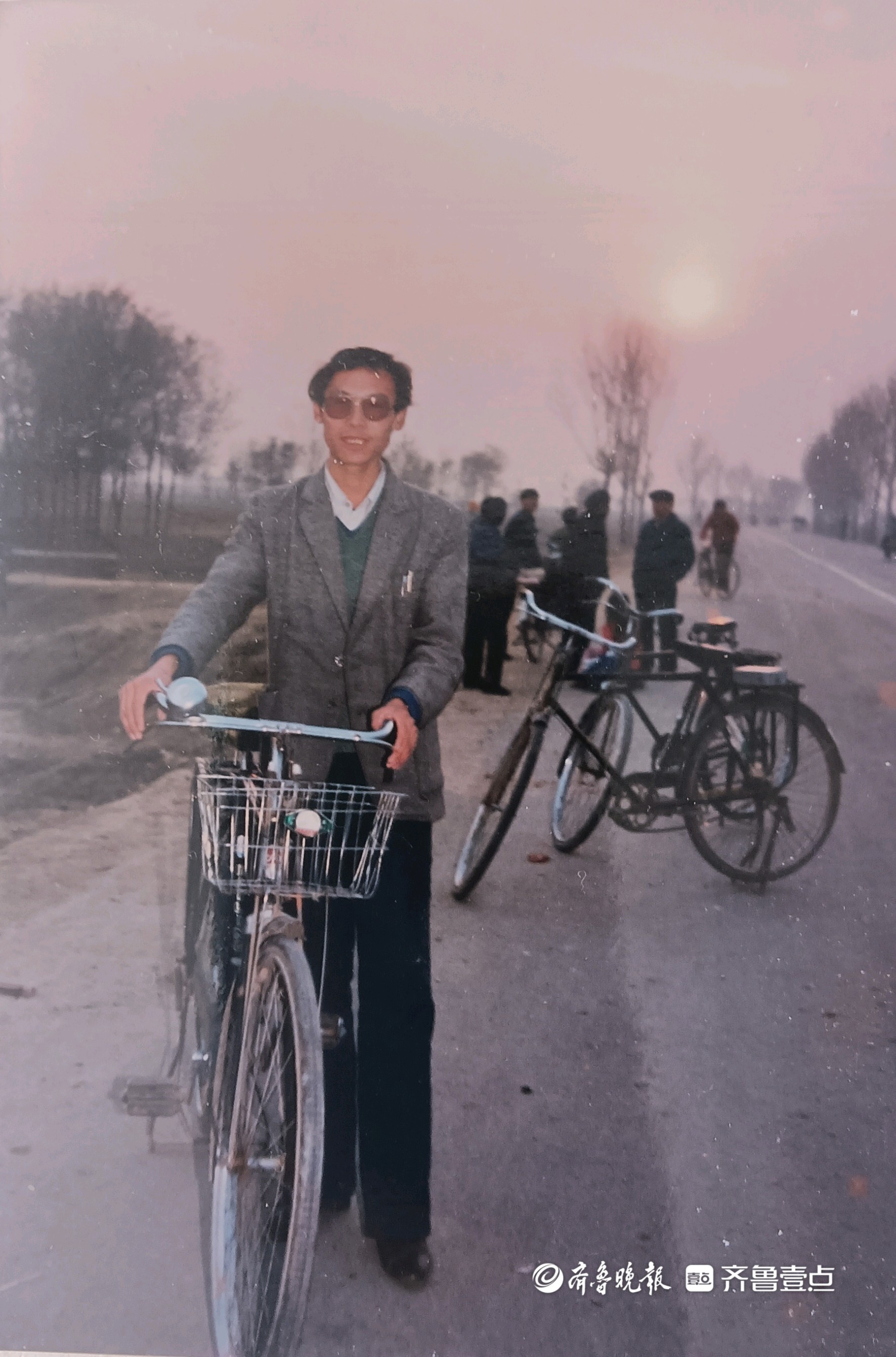 第一张照片是1987年我刚上班的时候照的,只记得是1987年,已经记不清当时是啥原因照的了,在那时骑一辆自行车是非常时髦的,当时我在惠民县食品公司石庙镇食品上班。看我的发型、着装、眼镜就能看出来,在那个年代可以说引领潮流的。