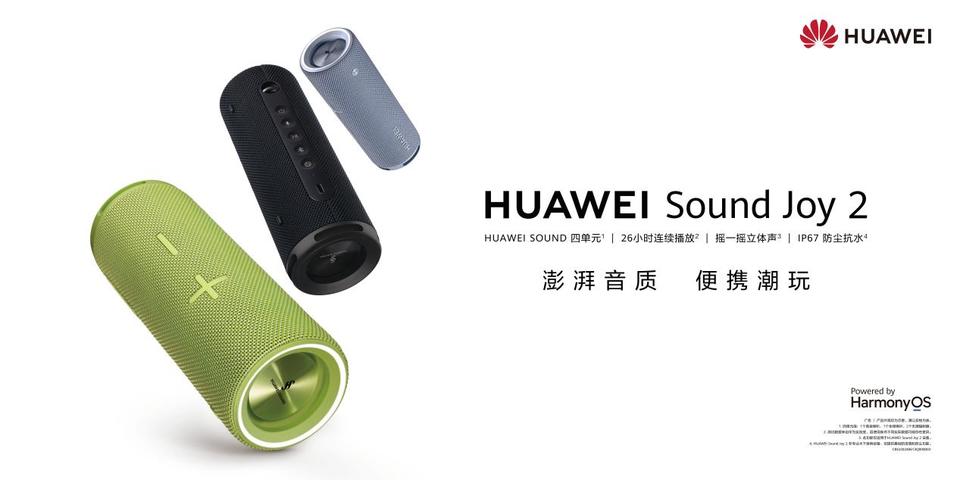 音质方面,HUAWEI Sound Joy 2传承了品牌的好音质基因,搭载了华为自研的HUAWEI SOUND四单元二分频声学架构,中低频震撼、高频嘹亮,单个音箱最大声量能覆盖一整个篮球场,让用户拥抱高品质的户外音乐生活;续航方面,新品配备8800mAh大容量电池,支持40W快充,充电十分钟即可播放音乐一小时,在蓝牙连接下至高实现26小时的超长续航,满足用户全天候音乐需求。此外,新品分为蓝牙版和智能版,蓝牙版HUAWEI Sound Joy 2还拥有手机一碰传音、HarmonyOS自发现、手表播控等丰富的智慧功能,智能版HUAWEI Sound Joy 2在蓝牙版的基础上,增加了语音控制、畅连通话等功能,并配备了海量音乐资源,以满足不同用户的音箱需求。无论是户外出行还是居家生活,HUAWEI Sound Joy 2都能满足用户的音乐需求,为用户带来“耳目一新”的音乐体验。