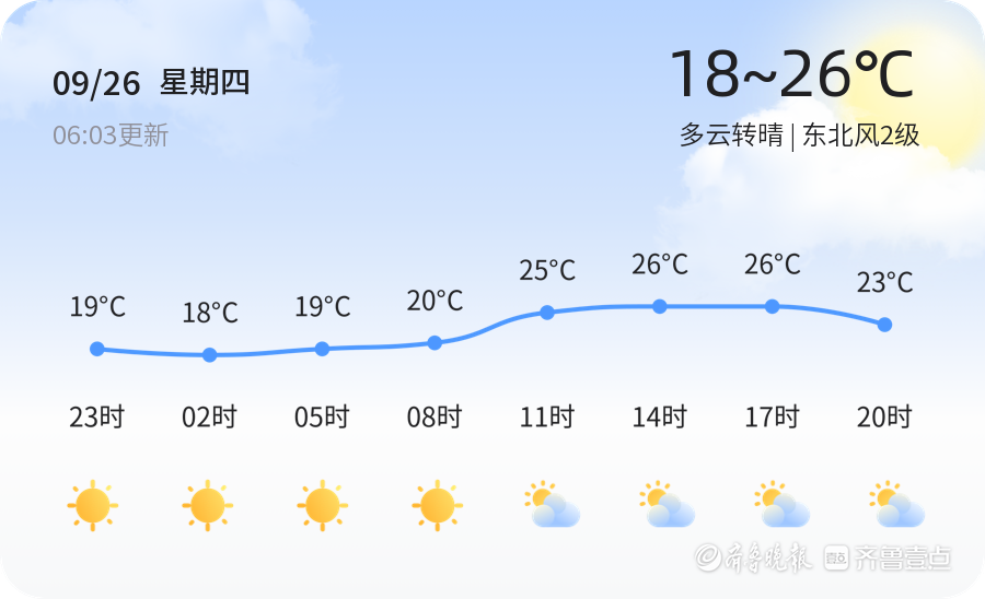 【泰安天气速递】2024年9月26日,农历八月廿四,泰安迎来多云转晴的天气,气温在18℃至26℃之间徘徊,东北风2级,相对湿度71%,空气质量轻度污染(PM2.5为62)。这样的天气对市民来说较为舒适,但外出时仍需注意防晒及补水。空气质量稍逊,建议敏感人群减少户外活动时间,并采取必要的防护措施。出行方面,由于天气晴朗,适合进行户外活动,但需注意交通安全。