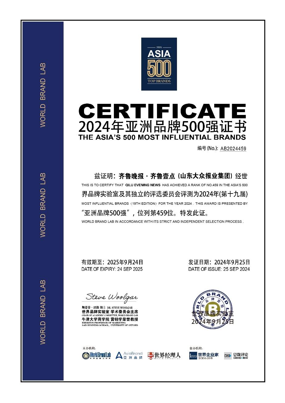 连续八年入选!齐鲁晚报•齐鲁壹点上榜2024年亚洲品牌500强