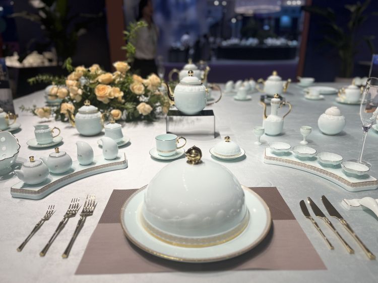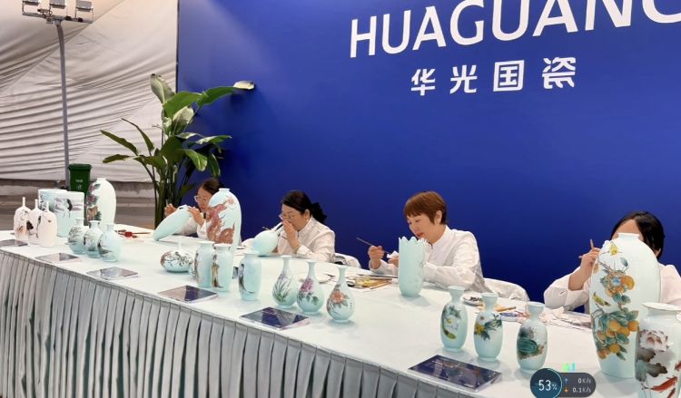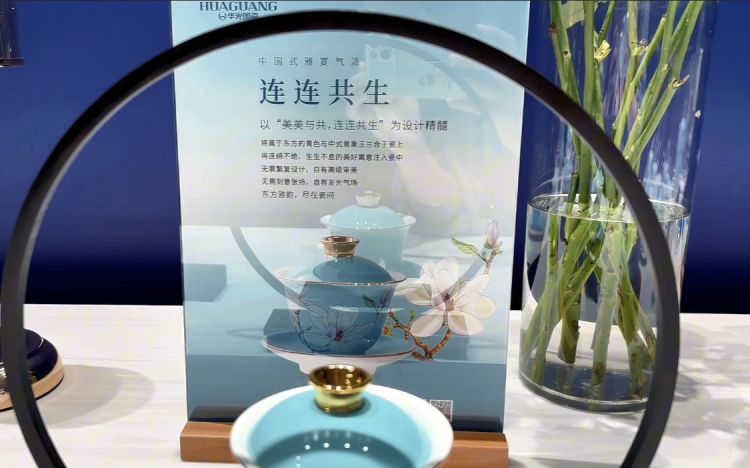记者在现场看到,华光展位有多个独立展区,分类呈现了近年来的产品创新成果,既有《千峰翠色》《国彩天姿》《盛世博鳌》等国礼国宾国宴用瓷,蜚声中外的《千里江山》系列、《央视春碗》系列等国潮文创产品,也有以中国宫廷文化为设计元素的《中国的奢华》系列,以及《升升不息》《月光水岸》《风华凝香》《连连共生》等国风日用瓷系列……琳琅满目的国瓷精品,让各地游客爱不释手、流连忘返。
