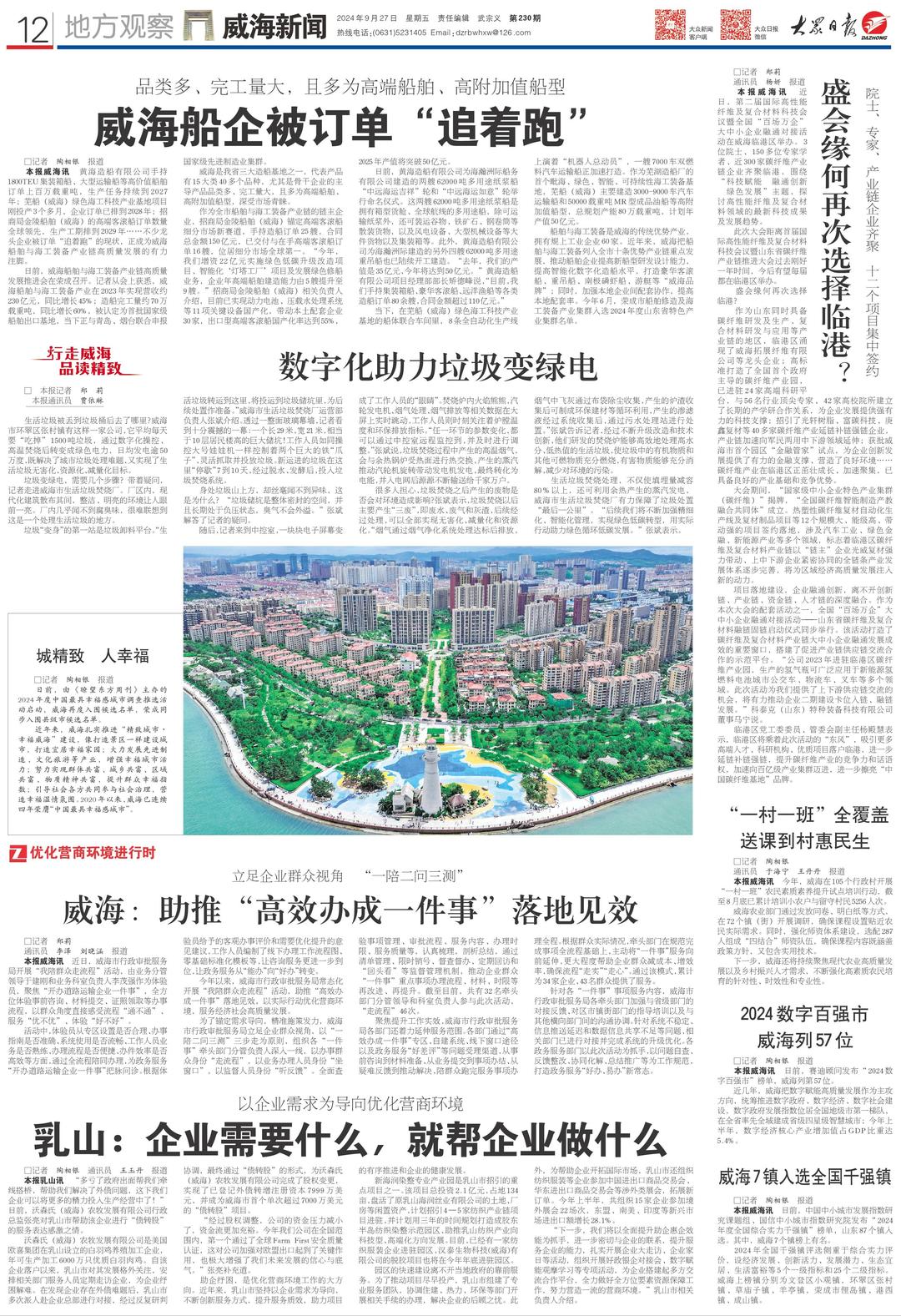 近日,赛迪顾问发布2024数字百强市,威海位列第57名。