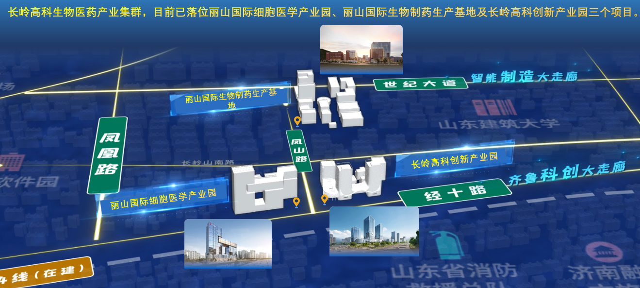作为中国(山东)自由贸易试验区细胞与基因治疗产业促进平台的产业落地载体,长岭高科生物医药产业集群,由历下区政府和自贸试验区济南片区管委会共同策划规划,聚焦细胞治疗、基因治疗和再生医学等前沿领域,以龙头企业为引领,重点打造历下区生物医药产业发展集聚区,打通生物医药产业“研发试验-中试申报及临床试验-规模化生产”