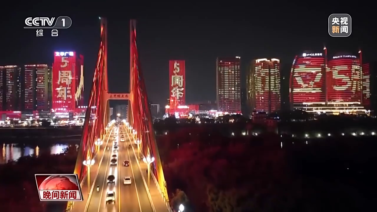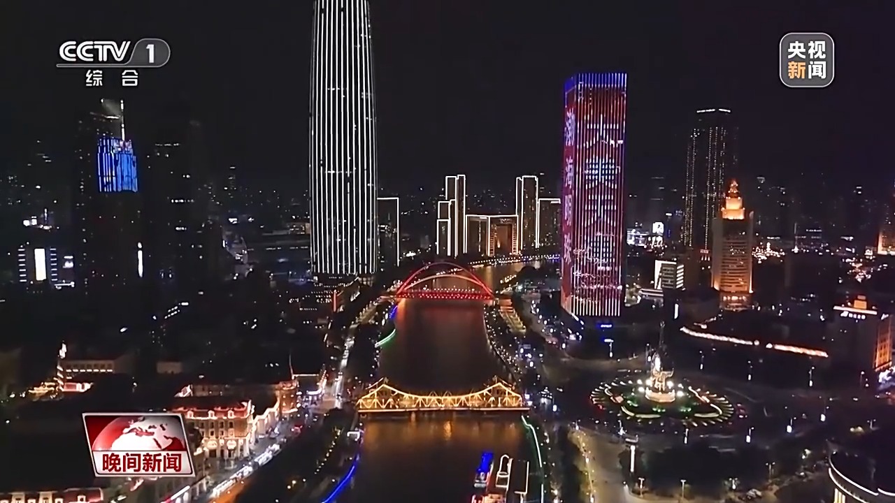 各地还用璀璨灯火迎接国庆。在天津,海河水波荡漾,两岸点点流光,人们乘船夜游,感受城市的灵动,节日的喜庆。