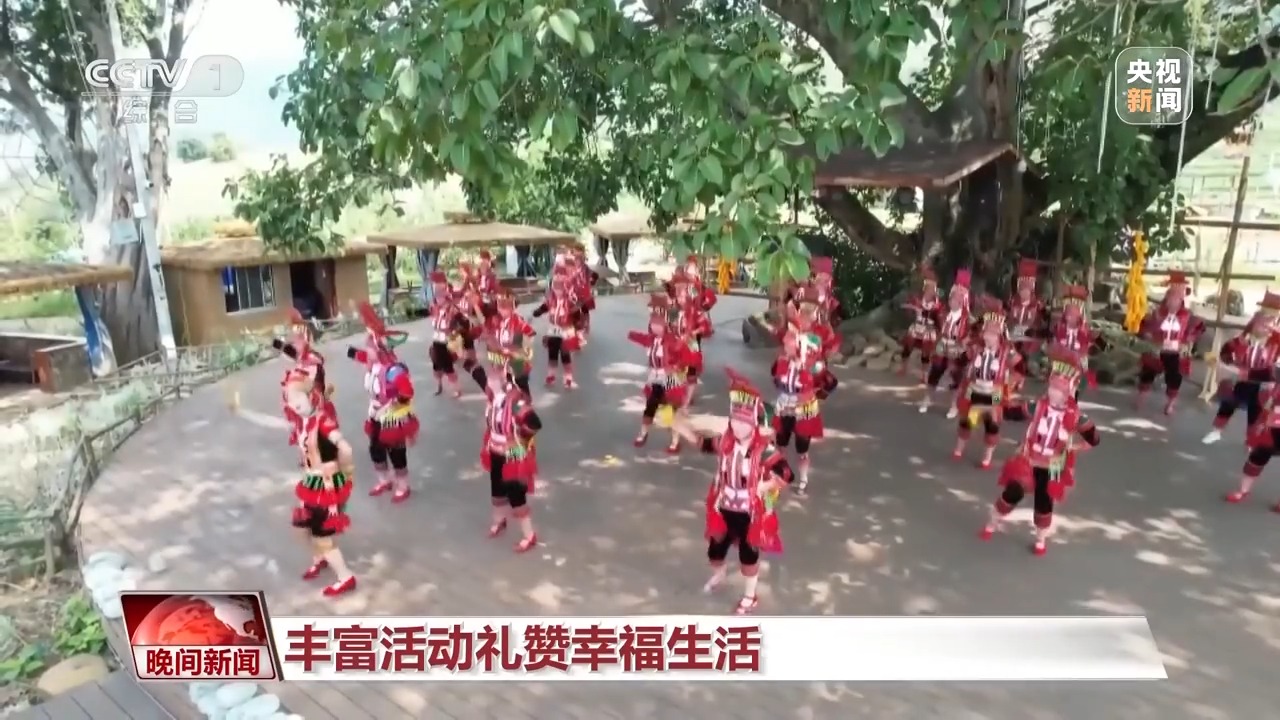 在云南石屏,彝族群众跳起特色舞蹈马缨花,营造浓浓的节庆氛围。