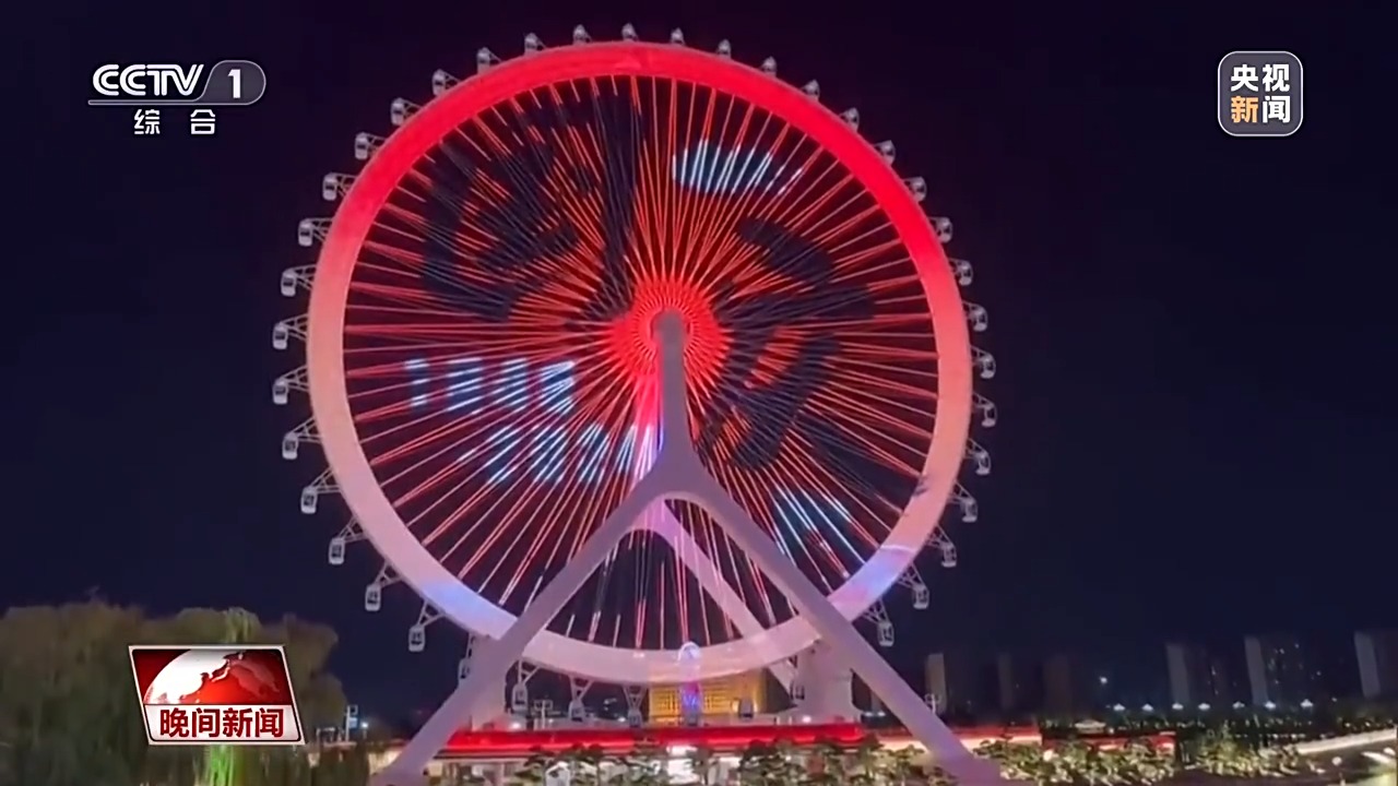 中轴线上的一座座地标建筑被点亮,光影交错下的钟鼓楼,透出欢乐祥和的古都风韵;灯光璀璨的CBD、丽泽商务区,与绵延的车流交相辉映;亮马河、奥林匹克塔的激光投影,结合喷泉水景,展现出京城的时尚与活力;首钢园区内的裸眼3D显示屏,营造一幅幅绚美的都市夜景,烘托出浓厚的节日气氛。