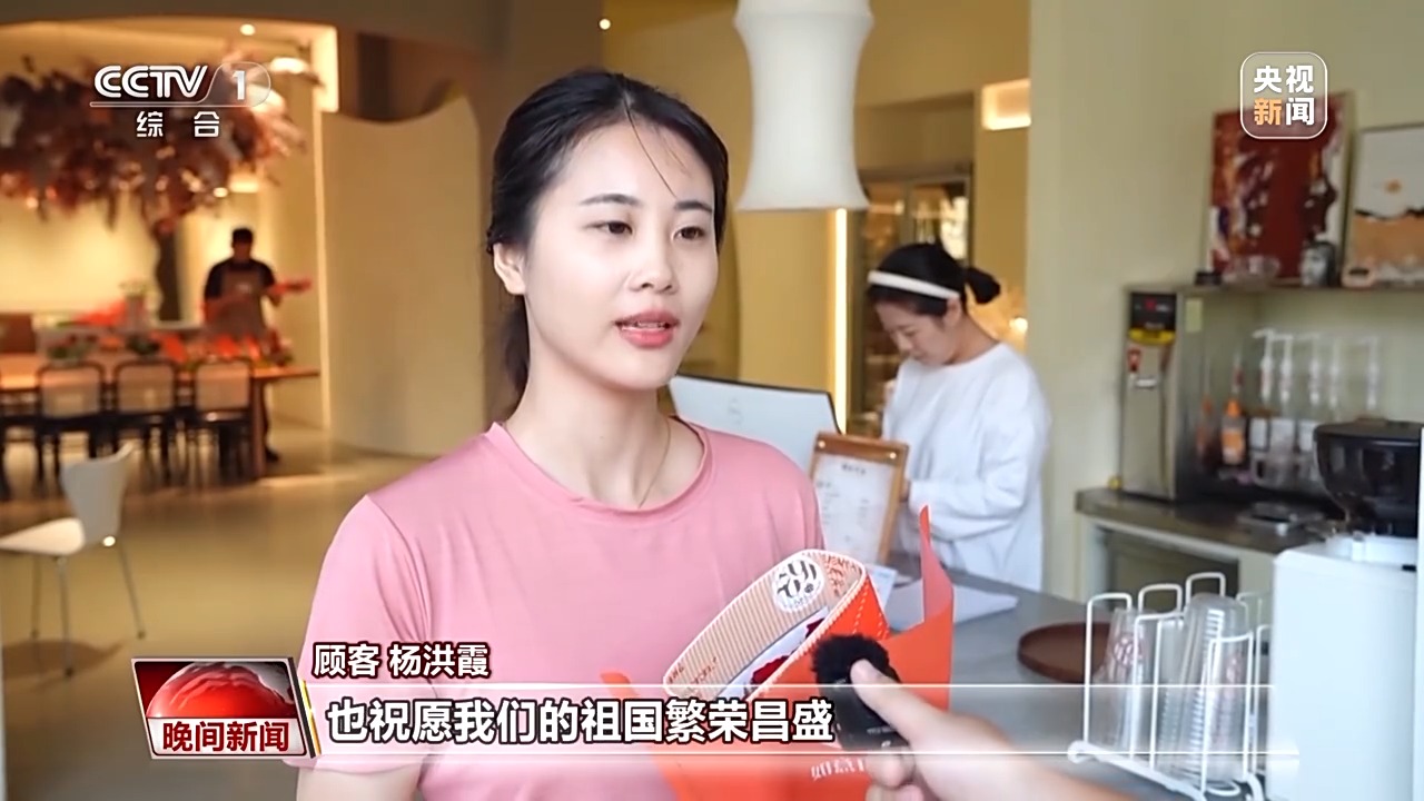 顾客 杨洪霞:到花店挑了一束鲜花,也是挑了红色的,放在家里也有美好的寓意,也祝愿我们的祖国繁荣昌盛。
