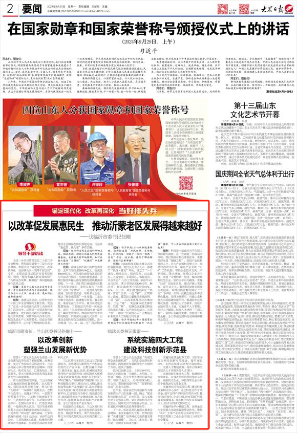 大众日报刊发专访临沂市委书记任刚文章《以改革促发展惠民生 推动沂蒙老区发展得越来越好 》
