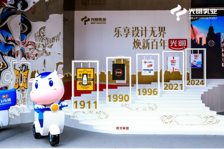 值得一提的是,在今年的世界设计之都大会上,光明乳业以“百年光明之路 焕新领鲜未来”为设计理念,精心打造了一场别开生面的特展。展台精心陈列了光明乳业的一系列核心产品,并打造了光梯区、数字资产区、上博区、奶箱陈列展示区、双城之战区、体育区、美术馆区、艺术节区等八大特色展区。步入展台仿佛步入“时光之门”,在这百年的光明之旅中,光明乳业愿与消费者一起感受设计的力量,共鉴光明的过去与未来。