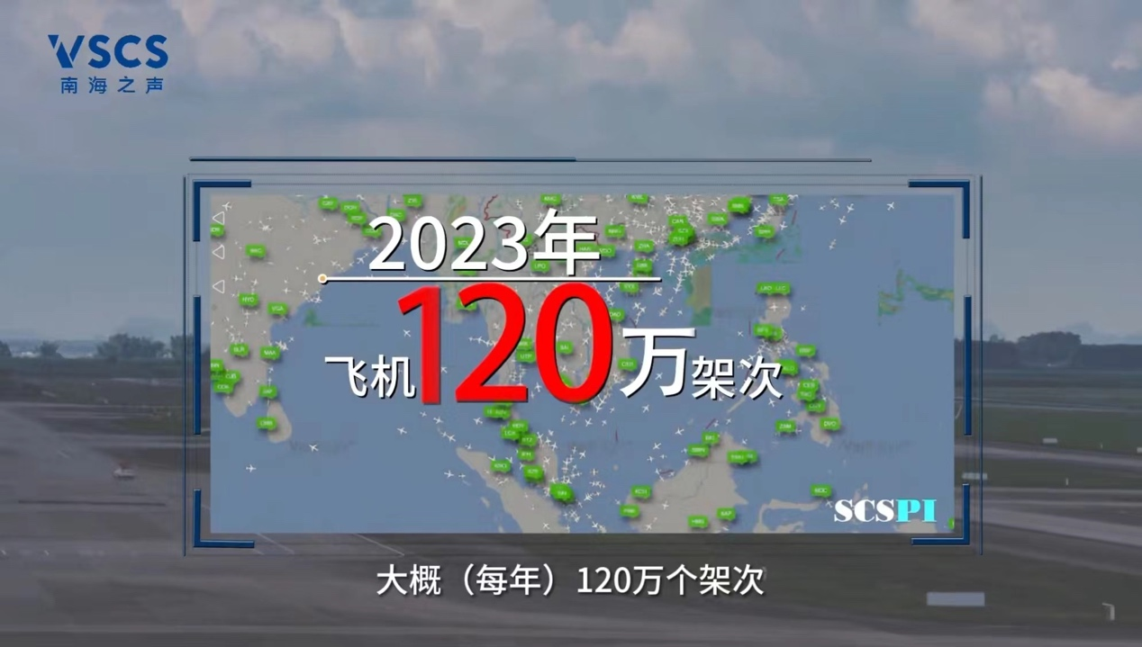 △2023年,共有106个国家或地区的近120万架次民用飞行器飞越了南海