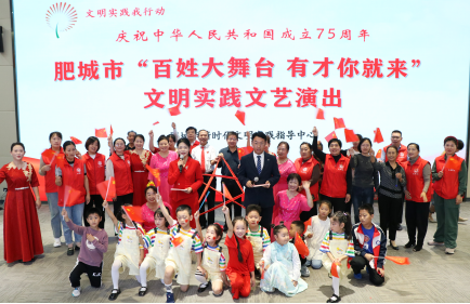 10月1日上午,肥城市庆祝新中国成立75周年“百姓大舞台 有才你就来”文明实践文艺演出在市新时代文明实践中心举办。广大市民群众、文明实践志愿者、文艺爱好者相聚一堂、登台献艺,用精彩纷呈的文艺演出向伟大祖国献上美好祝福。
