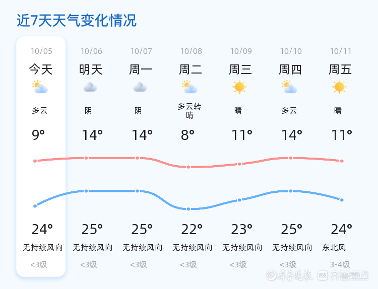 未来三天,滨州天气将以阴天和多云为主,气温较为稳定,最低气温在9°C至14°C之间波动,最高气温维持在22°C至25°C之间。周三开始天空逐渐放晴,但市民仍需关注天气变化,合理安排出行计划。特别是周末出行时,请提前查看天气预报,做好防晒或防雨准备。