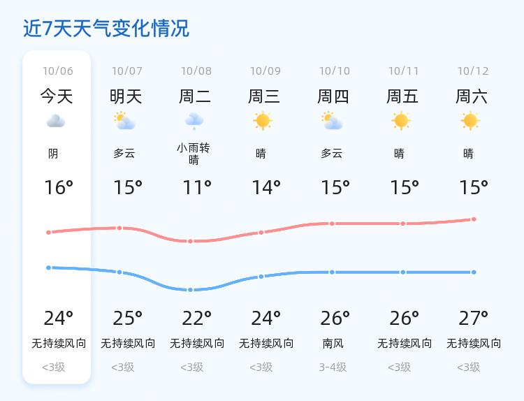 展望未来三天,聊城天气将呈现多变趋势。周二,预计会有小雨转晴的过程,气温有所下降,最低气温降至11°C,提醒市民注意携带雨具和增添衣物。周三至周五,天气以晴或多云为主,气温逐渐回升,最高气温将达到26°C至27°C之间,但昼夜温差较大,市民需合理调整着装。特别是周四,南风3-4级,可能对户外活动产生一定影响,请注意防风。