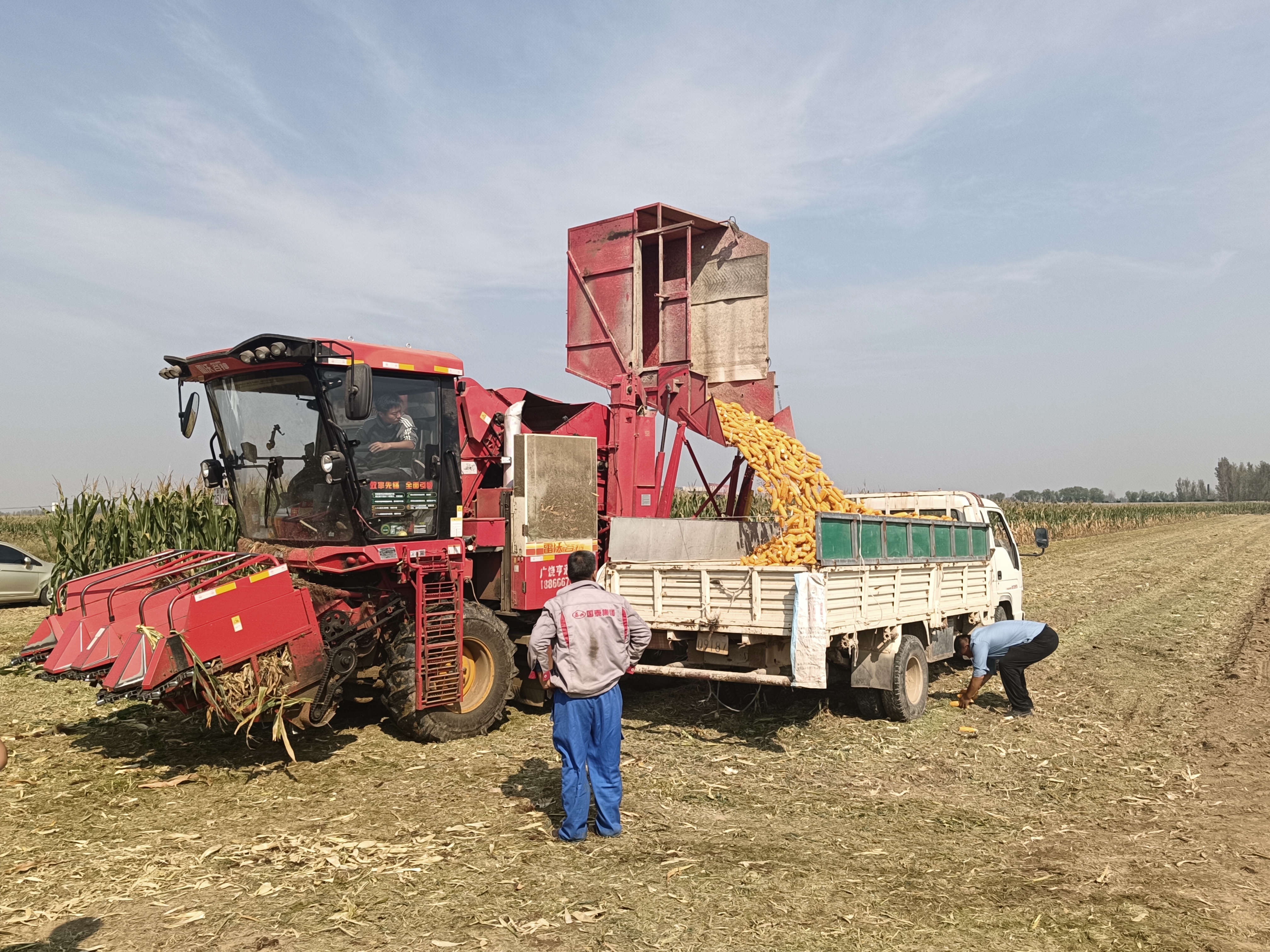 金黄的玉米棒槌从收割机吐出来,落入等候在一旁的小货车里,堆成一座小山。“夏种的时候遇上天旱,种上之后又下了几场雨,好在我们花官这边雨小,加上及时进行了人工管理,所以几乎没太受到影响。”田会员说,从此前测产和目前的收获情况来看,今年秋收总体还不错,和往年基本持平。
