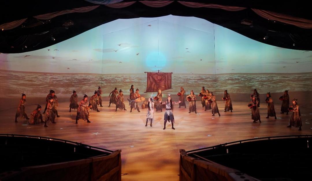 这是一场传统的音乐剧吗?这答案也许出乎你的意料!270度影像的全视域包裹,让你无死角的身临海洋;多自由度骑乘式动感坐席,让你身临其境感受大海航行;中国剧场的首个应用的Trusound全景声沉浸声渲染器,让大鲲犹如在你身边遨游。现代科技在这里得到充分发挥,声、光、电及机械互动系统,触达了观众的视觉、听觉、动感,甚至嗅觉,让你真正沉浸在这场历史与梦想共鸣的心灵奇遇。
