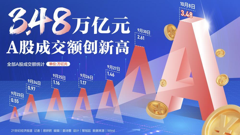 当天,全部A股成交额突破3.48万亿元,再创历史新高。