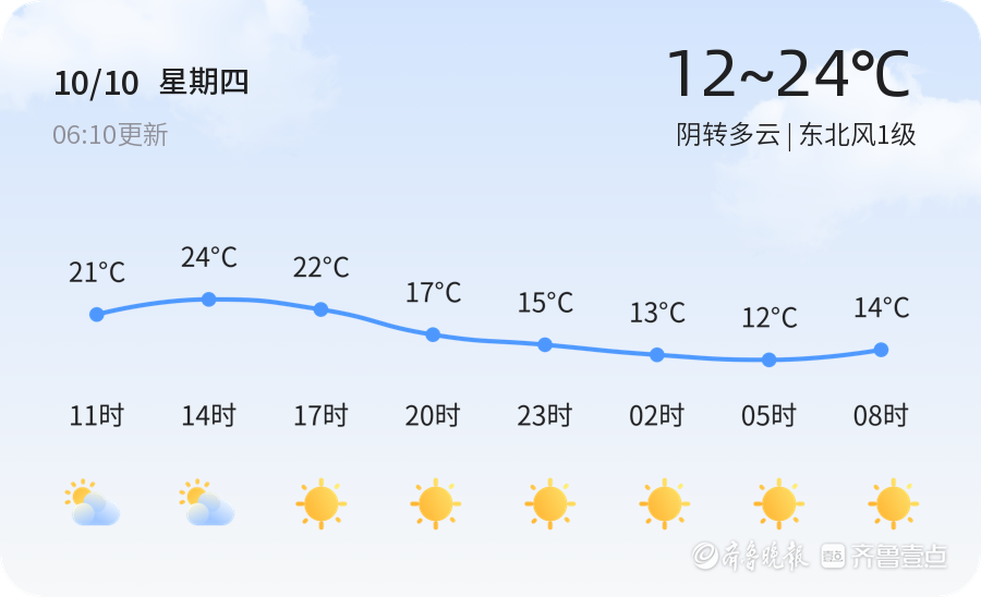 今日2024年10月10日,农历九月初八,临沂的天气呈现出阴转多云的态势,东北风轻轻吹拂,仅1级风力,体感温度适宜,气温范围在12℃至24℃之间,相对湿度高达78%,空气清新,PM2.5指数为64,属于良好范畴,对市民的健康无不良影响。市民外出无需特别防护,但鉴于天气阴晴不定,建议随身携带雨具以防不时之需。